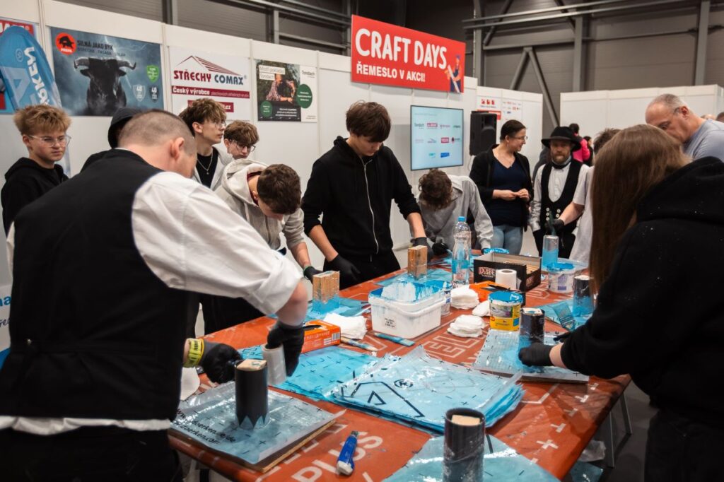 Veletrh STŘECHY–SOLAR–ŘEMESLO není jen velkou přehlídkou materiálů a produktů, ale je také aktivní součástí oboru, která pomáhá řešit jeho problémy. V souladu s touto vizí se v rámci veletrhu poprvé konal workshop CRAFT DAYS aneb Řemeslo v akci! Byť byla této aktivitě vymezená poměrně velká plocha, stejně se zde zájemci nevyhnuli tlačenici. Každý si totiž chtěl všechno vyzkoušet, opracováním břidlice počínaje a virtuálním svařovacím trenažerem konče. Organizátoři veletrhu ve spolupráci s Cechem klempířů, pokrývačů a tesařů ČR tak s úspěchem motivovali mladou generaci k zájmu o řemeslo.